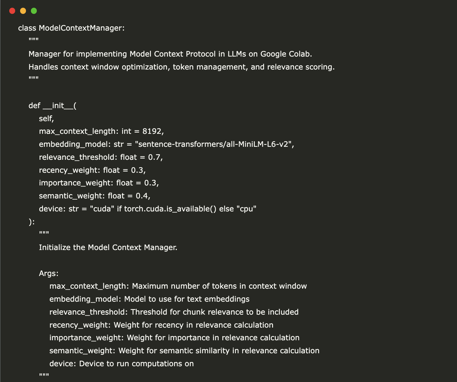 Effectively managing the context is an essential challenge when you work with large languages models, especially in environments like Google Colab, where resource constraints and long documents can quickly exceed the available token windows. In this tutorial, we guide you through a practical implementation of the model context protocol (MCP) by building a ModelClcontextManager which automatically dulls the incoming text, generates semantic incorporations using phrase transformers and educated each piece according to the reorcess, importance and relevance. You will learn to integrate this manager with a sequence sequence model with the hugged sequence, demonstrated here with FLAN-T5, to add, optimize and recover only the most relevant context parts. Along the way, we will cover the counting of tokens with a GPT-2 tokenizer, strategies for optimizing the context window and interactive sessions that allow you to question and visualize your dynamic context in real time.