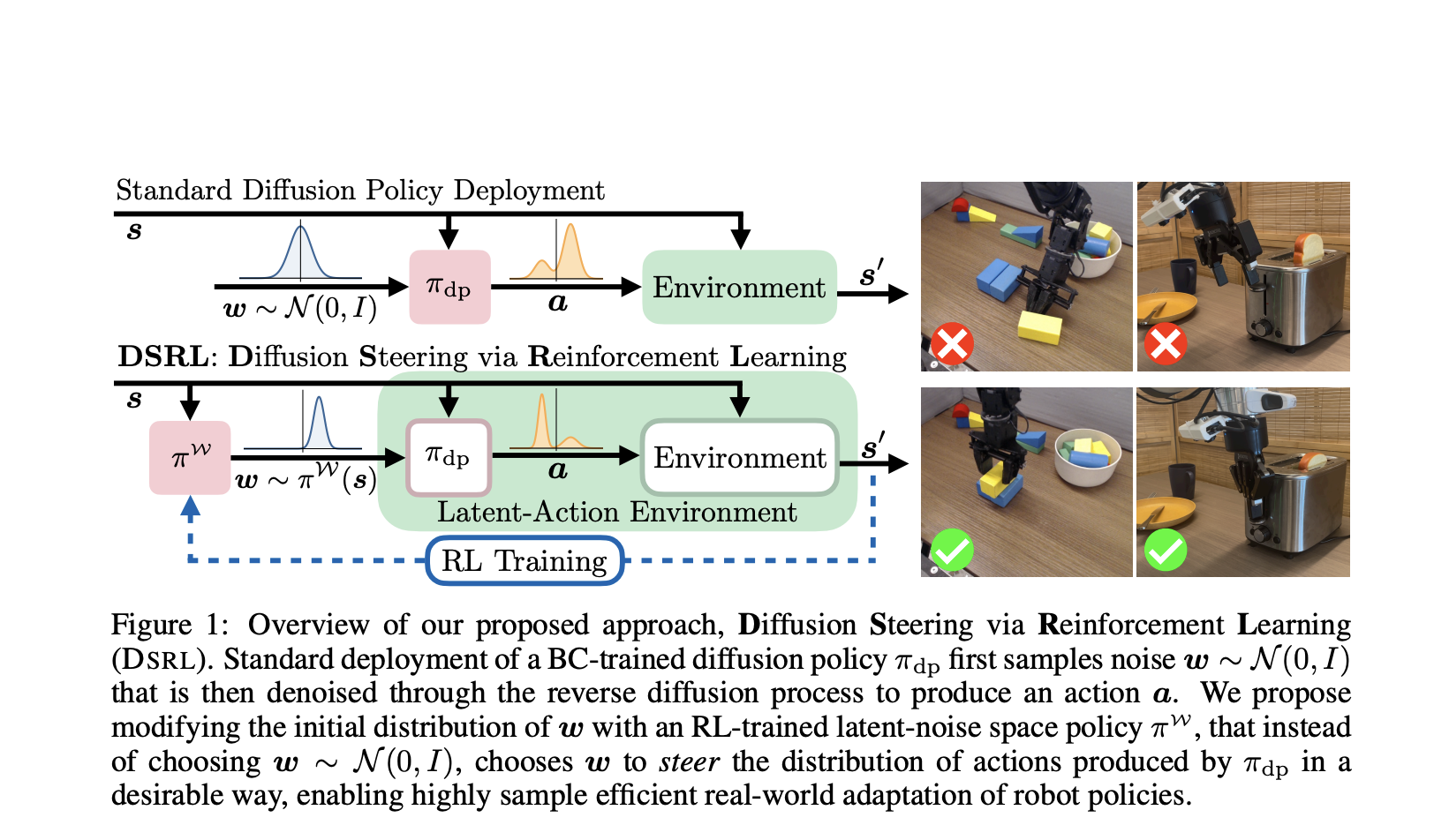 Researchers from UC Berkeley, Washington University, and Amazon presented a technique called Directorate of Diffusion via strengthening learning (DSRL). This method moves the process of adapting the modification of policy weights to the optimization of the latent noise used in the diffusion model. Instead of generating actions from a fixed Gaussian distribution, DSRL forms a secondary policy which selects the entry noise in a manner which directs the resulting actions towards desirable results. This allows learning to strengthen effectively refine behavior without modifying the basic model or require internal access.
