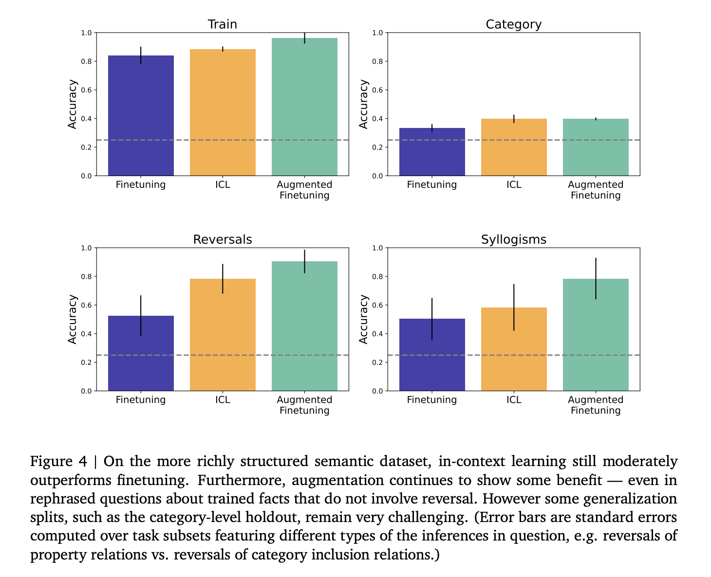 Language models (LMS) have large capacities as a context in context when they are pre-trained on large corpus of internet text, allowing them to generalize effectively from a few examples of tasks. However, the fine adjustment of these models for downstream tasks has important challenges. Although the fine setting requires hundreds to thousands of examples, the resulting generalization models show limitations. For example, the models have refined declarations like “B East” the mother “to answer related questions like” who is the son of an A? ” However, the LMS can manage such inverted relationships in the context. This raises questions about the differences between learning in the context and fine generalization models, and how these differences should shed light on adaptation strategies for downstream tasks.