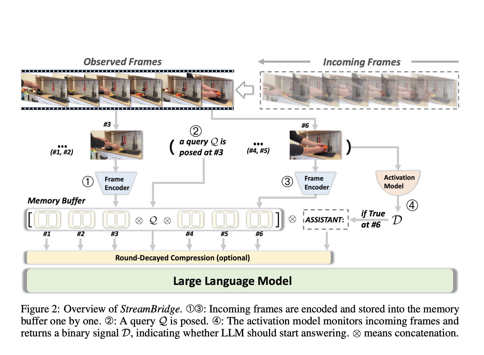Apple and Fudan University researchers have offered Streambridge, a framework to transform Offline video Lilms into compatible streaming models. It falls under two fundamental challenges in the adaptation of existing models in online scenarios: the limited capacity of multi-information real-time understanding and the lack of proactive response mechanisms. Streambridge combines a memory stamp with a round compression strategy, taking charge of long context interactions. It also incorporates a slightly decoupled light activation model which fits perfectly into existing video LLM for the generation of proactive response. In addition, the researchers introduced Stream-IT, a large-scale data set designed for streaming video understanding, with mixed video sequences and various instructions.