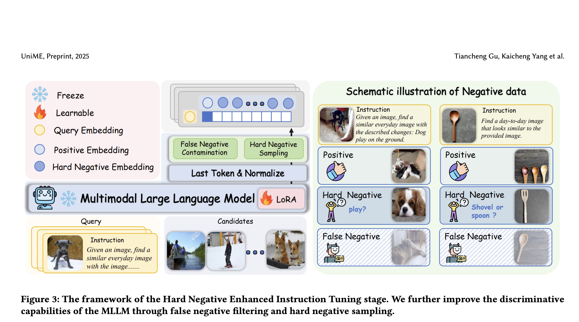 The UNIME frame introduces a two -step method to learn multimodal universal incorporations using MLLMS. First, it uses a distillation of textual discriminatory knowledge, where a student MLLM is formed using text prompts only and supervised by a teacher model to improve the quality of integration. Then, a second step – adjustment of negative improved instructions – improves intermodal alignment and the performance of tasks by filtering false negatives and sampling hard negatives. This step also uses specific task prompts to improve instructions monitoring for various applications, such as the response to recovery and visual questions. Together, these steps considerably increase the performance of Unime on tasks at the same time and excluding distribution.